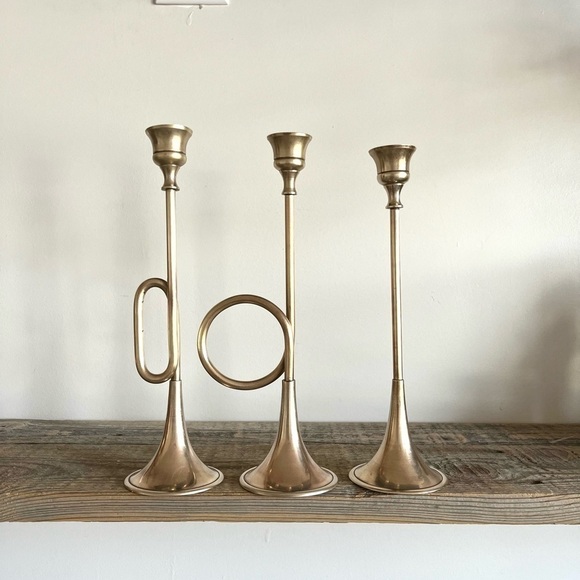 Bugle style brass candlestick trumpet horn set of 3