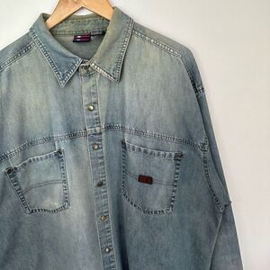 Bugle Boy Vintage Distressed Faded Collared Denim Button Down Shacket