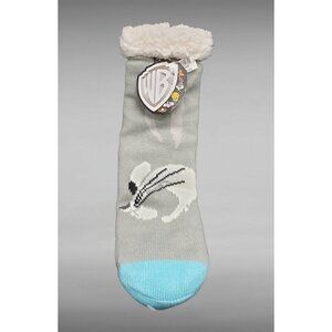 Bugs Bunny Slipper Socks Looney Tunes Sherpa Lined No Slip Grip Adult One Size