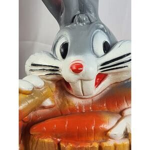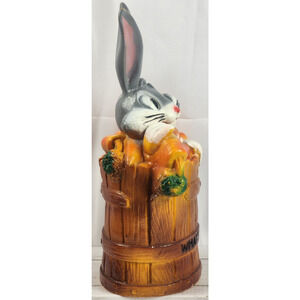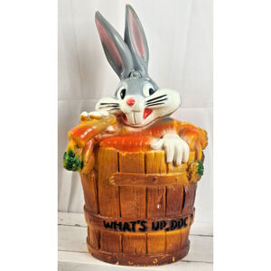 Vintage 1979 Bugs Bunny 'What's Up, Doc?' plastic bank standing at 13" tall, featuring the iconic Disney character Bugs Bunny, collectible item from Homecraft Productions, nostalgic piece for fans of Disney and Bugs Bunny, functional and decorative.