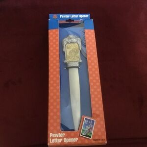 Pewter Letter Opener with Tasmania Devil with Bugs Bunny on gold stamp inside Tasmania mouth. Box has never been open.