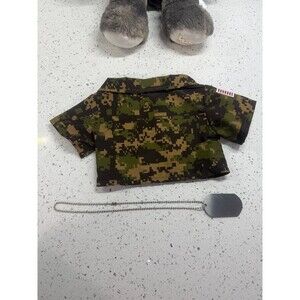 Includes military shirt that has stain on inside of shirt and BAB dog tag has exposed seam on face which I’m not sure whether or not is part of plush design otherwise in good condition for any Build a Bear fan or Great Wolf Lodge lover. D