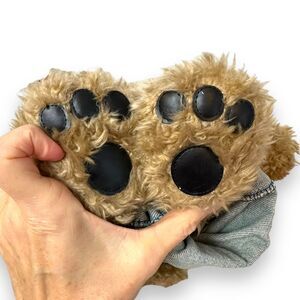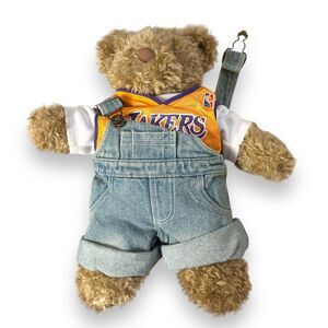 Build A Bear Curly Teddy Bear Brown Paws Vintage Retired Lakers Tank Overalls