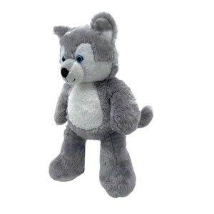 Build A Bear Great Wolf Lodge Wiley the Wolf BAB 16 Plush Stuffed Toy Blue Eyes. Gently used condition, with minor signs of wear: small marks. There is a voicebox in right hand, but battery has died. Please review all photos, notes and descriptions for additional product information and additional details on condition. All item are appropriately washed, cleaned and/or sanitized prior to listing. Packaged with love and stored in a smoke and pest free, hypoallergenic home. Shipped with care.