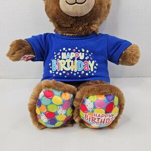 Build A Bear Happy Birthday Bear Plush Brown Teddy Blue T-Shirt Stuffed Animal