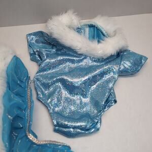 Build A Bear Ice Skating Sparkle Ice Blue Iridescent Outfit w/ Faux Fur & Skates