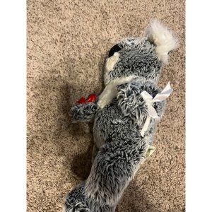 "Build A Bear Koala Bear Soft Gray White Plush Realistic Stuffed Animal Toy BAB" is 16 inches of huggable, loveable, fun. This retired, realistic koala bear design features grey and white fur with a red and a white bow on each paw, perfect for unisex kids.