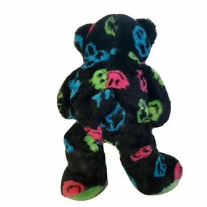 Build A Bear Neon Black Green Blue Pink Smiley Faces Peace Signs 16 Plush Teddy