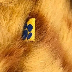 Condition: Good, slight wear with age, missing one whisker on the left side. Stain on back of right paw.