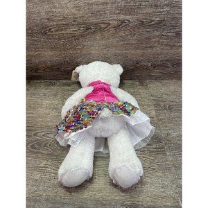 Build A Bear Pearly Shimmer Silver White Plush Pink Dress/Sequined Bows w/Tag