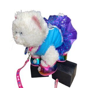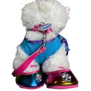 Build A Bear Pets White Cat Himalayan Persian 12” Plush Dress, Shoes & Leash