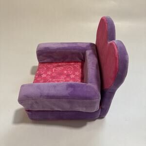 Build A Bear Plush Pink Purple Heart Shaped Fold Out Couch Futon Bed Chair