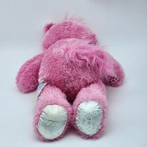 Collectible, classic build-a-bear pink sparkle cat with tiara print on ears and feet and embroidered heart collar.