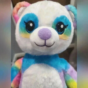 This Build-A-Bear Workshop Rainbow Friends Panda Plush is a must-have for any stuffed animal collector or fan. With its glitter sparkle eyes and colorful design, this medium-sized (14-24 inches) bear is sure to bring a smile to anyone's face. It's a retired piece, making it a unique find for any occasion.