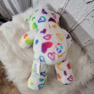 Build A Bear Rainbow Hearts Teddy Bear Plush Stuffed Animal Toy White 17 Inch