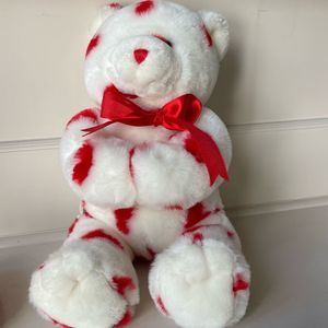 Bundle includes both the Retired 2003 Build a Bear Hearts of Plenty Magnetic Paws and Mouth Limited Edition Plush Toy Bear white with red hearts AND the Red Heart Shaped Pillow with a Secret Pocket for a surprise hidden small gift like money or ring.