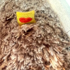 The only real signs of wear are the tiny bit of hair at the top of the monkey's head from being washed and the tag that can be cut off. Plus, it's been freshly washed and is ready to be loved all over again.