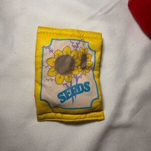 This is in great used condition with no rips or stains. The watering can has a stretched band. The seeds have some cracking in logo. Please view all photographs prior to purchasing.