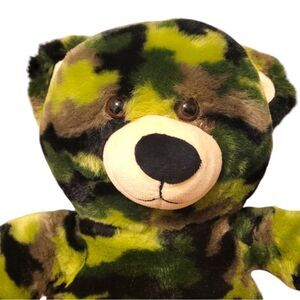 This adorable camouflage plush teddy bear is perfect for kids who love adventure. In great pre-owned condition with no holes or stains. Authentic Build A Bear from 2010.