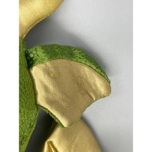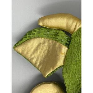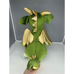 This listing is for a rarer Build A Bear Fire Breathing Dragon from the Enchanted Series. He is approximately 17 inches tall and is retired and very hard to find. He has gold wings, horns, spikes and inner ears, a green scaled body and super soft, green, yellow and beige variegated belly. He has his original tushy tag with a date of 1/2010 and is in pre-owned condition. The only issue I see is that there are a few areas where some of the “metallic” on the gold color has some wear to it. I did photograph those areas and circle them in the photo. Otherwise it is really very good condition. He is sure to make a treasured addition to any collection!