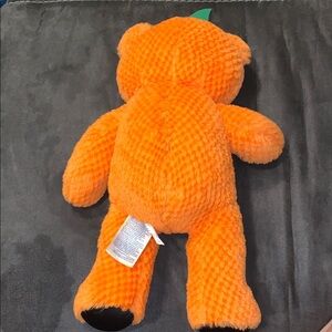 Delight your child with this adorable orange plush pumpkin toy. Perfect for Halloween-themed playtime. Soft and cuddly, it's a great addition to any toy collection. There is a sound box inside his left paw but it doesn’t seem to do anything. Otherwise he is in excellent condition! The button in his right paw works and makes his face glow like a flickering jackolantern! Velcro pocket on his side for his battery pack.
