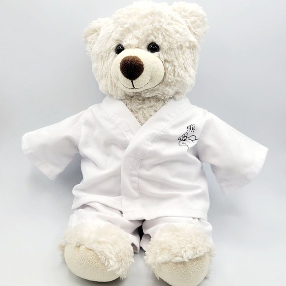 Build a Bear Karate Bear Stuffed Animal Plush Cream & White Karate Gi Outfit 15"