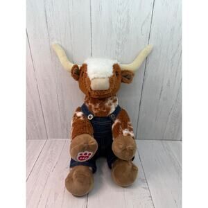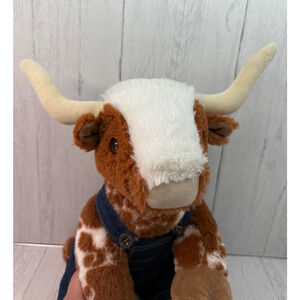 Build a Bear Longhorn Cow Cattle Orange White Denim Overalls Stuffed Animal