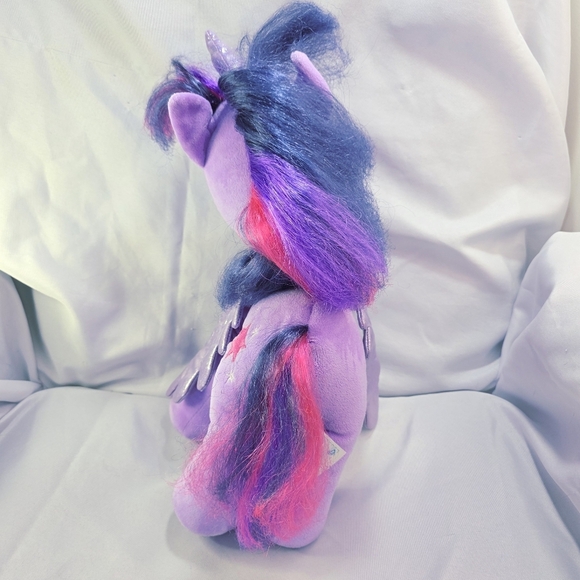 This 15-inch plush toy from Build-A-Bear Workshop features Princess Twilight Sparkle from the popular My Little Pony series. The toy is purple in color and has wings and horn. It is medium-sized and is perfect for cuddling or display. The toy is retired and was made in China in 2014. It is recommended for children ages 1 and up and is suitable for all occasions.