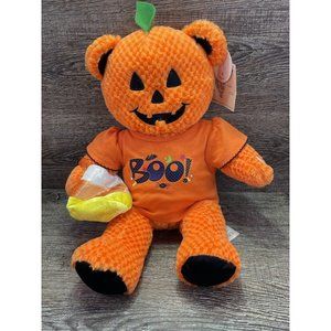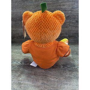 This Build a Bear Workshop plush bear is perfect for Halloween. The bear is orange in color and has a pumpkin glow feature that's battery-operated. It comes dressed in a Halloween shirt with a candy corn bag