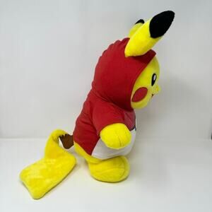 Build a Bear Pokemon Pikachu 17" Plush with Poke Ball Hooded Tee Stuffed Animal. Build a Bear Workshop yellow plush Pikachu. He has a lightning bolt shaped tail. He wears a Poke Ball Hooded T-Shirt. He has no sound.