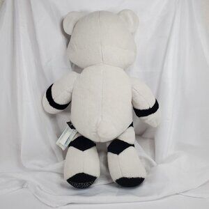 This is a rare collectible Build-a-Bear Workshop plush bear featuring a Star Wars Storm Trooper design from The Force Awakens movie. This bear was created in 2016 and is now retired. The cute and cuddly toy is made of high-quality plush material in black and white, with no visible signs of wear and tear. It is perfect for any fan of the Star Wars franchise, young or old, and would make a great addition to any collection.