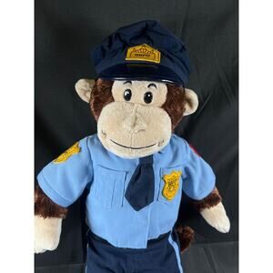 Build a Bear Workshop Brown Monkey 18" Plush W/ Police Outfit Good Condition BAB