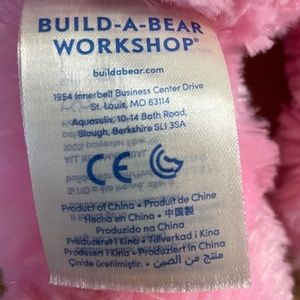 Build a Bear Workshop Pink Bear Plush w Heart Nose Blue Eyes Cuddly Teddy Bear