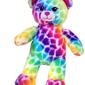Build a Bear Workshop Rainbow Spots Leopard 16" Glitter Nose Silky Paws Ears BAB