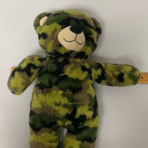 Build A Bear Camo Camouflage Green Military 17" Soft Plush Bear BABW