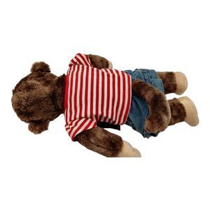 Zoom in on photos for details. You will receive the exact 20" Build A Bear Monkey plush stuffed toy with branded shirt + skirt shown. Appearance may vary with lights, background, or screen. May show signs of gentle wear. Monkey + clothes washed before photos. Clean + ready to be yours. No stains, rips, or tears. What a cutie in designer BAB Vested Striped New York Apple Shirt & 2 Pocket Denim Skirt. Enjoy!