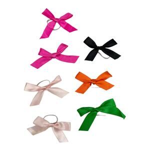 This lot contains many bows of various colors and styles. It also contains glasses and sunglasses, sparkly boots, and a hanger for a bear closet. The bows fit neatly inside the metal case.