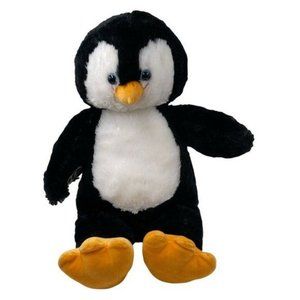 This is a cute 14" Artic Penguin with an orange beak and feet, black flippers and soft fur. It has a sound device, in the paw, but I can't figure out what it's saying. Pre-owned, great condition. The flipper with the sound device doesn't seem to be stuffed as much as the other flipper.
