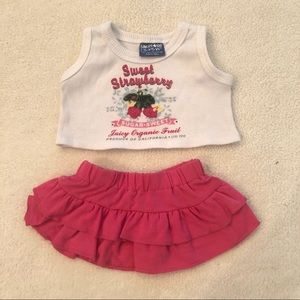 Lower Left: Collaboration with Limited Too. Strawberry tank and ruffled pink skirt.