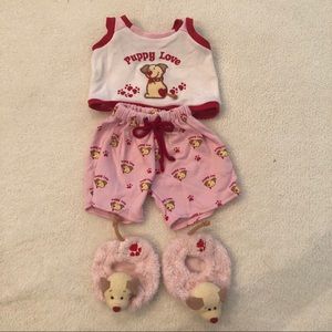 Lower a Right: Puppy love pajama set with puppy slippers.