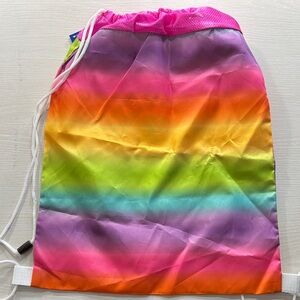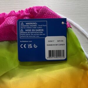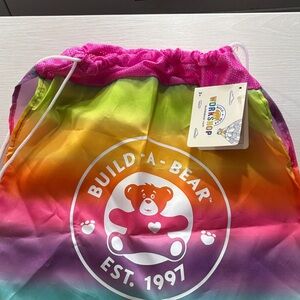 Vibrant bag with rainbow design. Perfect for kids' essentials. Features Build-A-Bear logo. Also has arm holes made in for your bear.