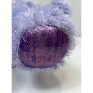 Sparkling with Disney magic, this Build-A-Bear Workshop Frozen II Anna teddy bear features soft purple fur with shimmering threads and embroidered paw pads reading “Anna.” Perfect for fans of the movie or collectors of Disney BAB plushies.