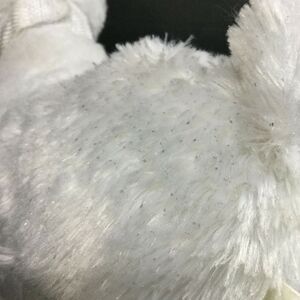 This plush is in great condition! She has white fur, speckled with metallic silver. She is complete with a collar with a medallion with her name on it. Her antlers are pink and white and glitter with a silver sheen. She has a couple of very tiny stains, one on the back of her head and another on one leg.