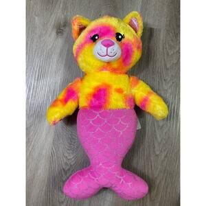 Build-A-Bear Mer-Cat Plush 16" Pink Tie-Dye Shimmering Tail Mermaid Cat