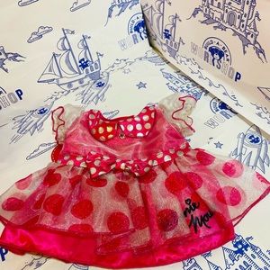 Disney’s polkadot Minnie Mouse and fuchsia Minnie Mouse of Build a Bear Workshop Collection. Polkadot Minnie Mouse dress like new and Disneyland Minnie Mouse hat and Minnie Mouse t-shirt all items in excellent condition