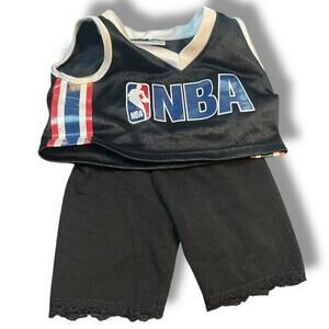 Build-A-Bear NBA Basketball Uniform Jersey Shorts Teddy Clothes Outfit Black 2 Pc