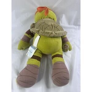 The Build-A-Bear Nickelodeon Michelangelo Teenage Mutant Ninja Turtles Stuffed is an 18-inch plush toy featuring the iconic character Michelangelo from the Teenage Mutant Ninja Turtles franchise. This green turtle stuffed animal has blue eyes and is part of the Ninja Turtles collection manufactured by Build-A-Bear Workshop in 2014. Perfect for all occasions, this original plush toy weighs 12 ounces and is a must-have for fans of the TMNT series.