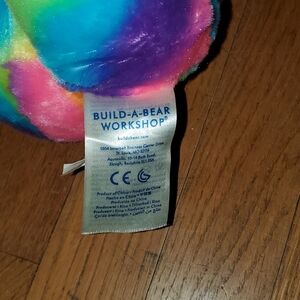 Rainbow Bear is so beautiful and colorful! He just makes me smile! Gorgeous purple satin feet and ears. Velcro paws and talking box in right paw.