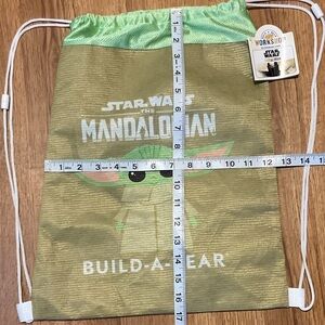 This Build-A-Bear Star Wars Mandalorian drawstring bag is perfect for kids. Featuring a charming green design, it's ideal for carrying essentials in style.