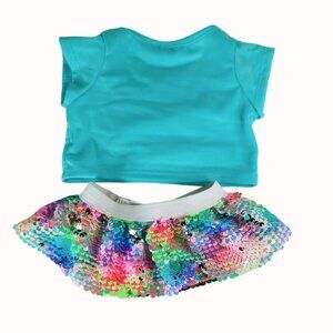 Build-A-Bear Workshop Pandacorn Panda Unicorn Plush Outfit With Sequin Skirt. Condition is preowned. Transform your bear into the ultimate party animal. This outfit features a panda with a unicorn horn and a dazzling sequin skirt. (FC03)